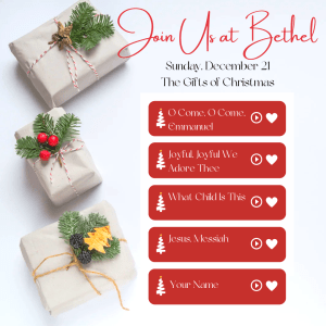You are welcome to join us in person on Sundays at 10 a.m. and 7 p.m. (March to November) and 10 a.m. and 3 p.m. (November to March), or feel free to click on the “View Us Live” icon to the right to connect to Bethel’s YouTube channel and watch online.
