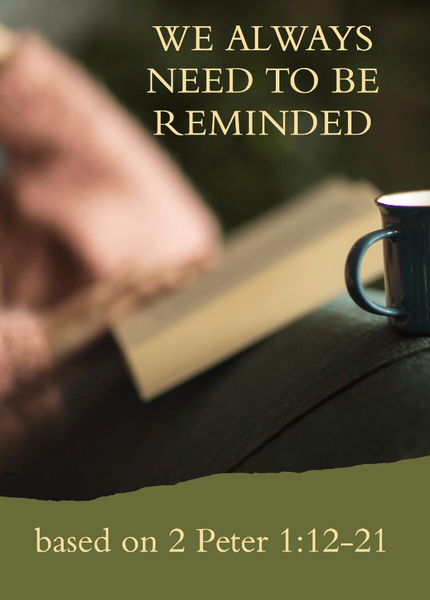 LIVESTREAM and IN PERSON This Sunday morning, November 26, 2023 at Bethel Dunnville we reflect on “We Always Need to be Reminded” based on 2 Peter 1:12-21 and Lord’s Day 7. Join us at 10 a.m. in person or on our YouTube Channel: https://www.youtube.com/channel/UCZbo9nvMfvfKQsFRTBzDx7