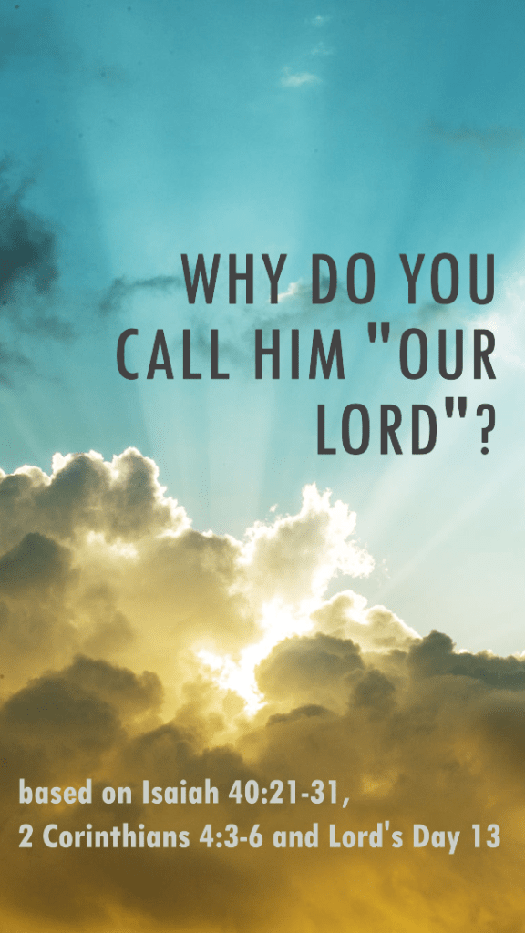 LIVESTREAM and IN PERSON This Sunday morning, February 11, 2024 at Bethel Dunnville we reflect on “Why Do You Call Him “Our Lord”?” based on Isaiah 40:21-32; 2 Corinthians 4:3-6. Join us at 10 a.m. in person or on our YouTube Channel: https://www.youtube.com/channel/UCZbo9nvMfvfKQsFRTBzDx7