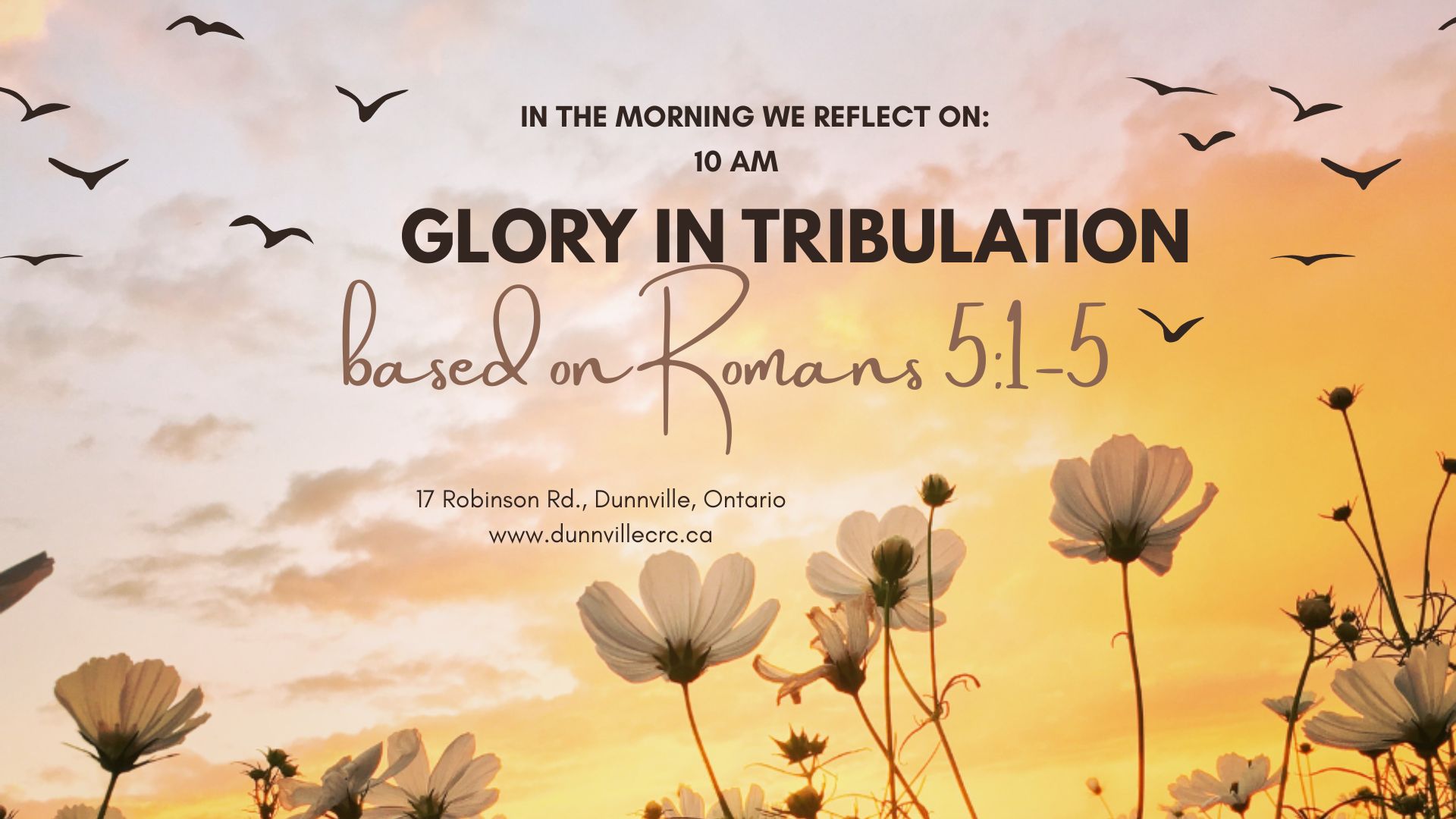 LIVESTREAM and IN PERSON This Sunday morning, June 15, 2025, at 10 a.m. at Bethel Dunnville, we will reflect on “Glory in Tribulation” based on Romans 5:1-5. Join us at 10 a.m. in person or on our YouTube Channel: https://www.youtube.com/channel/UCZbo9nvMfvfKQsFRTBzDx7